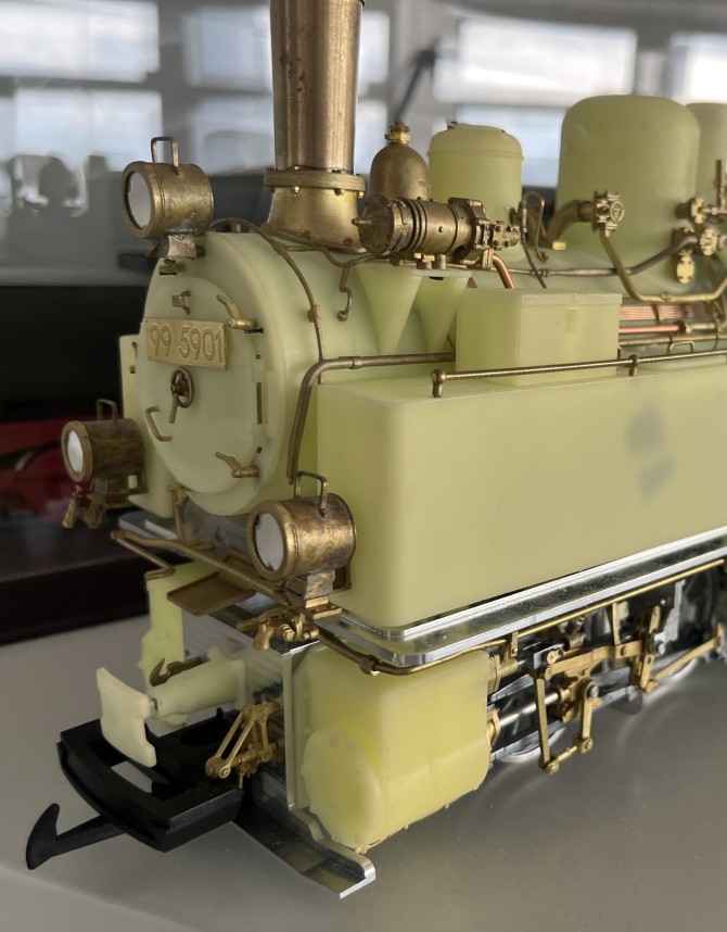 Ganz aktuell ist die 99 5902 im grünen Farbkleid als Fertigungsmuster eingetroffen und wird geprüft.