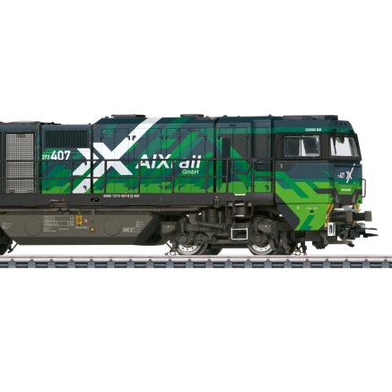 Erst seit wenigen Monaten ist die G2000 (272 407-8) im Dienst der AIXrail mit diesem attraktiven Design unterwegs. Das Modell rollt nun aufs Märklin Gleis.