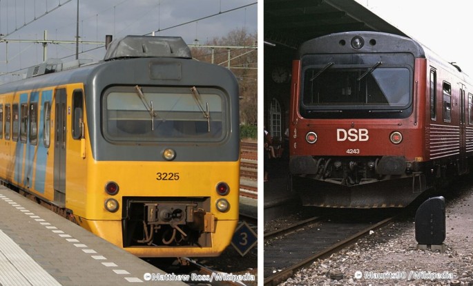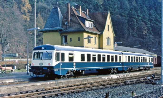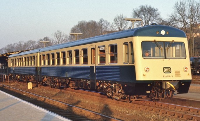 Alt und neu kümmern sich um gemeinsam um den Nahverkehr. Der 628 250 trifft 1992 in Fridingen auf den VT5. Copyright Ulrich Neumann / Slg. Eisenbahnstiftung.