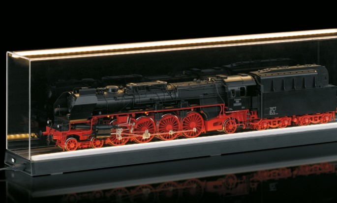 Wer die Faszination der Vorbilder in die eigenen vier Wände holen möchte, aber nicht unbedingt gleich eine Anlage bauen möchte, kann die großen Märklin Modelle auch mit den Schauvitrinen in Szene setzen.