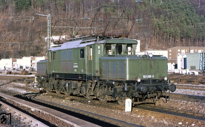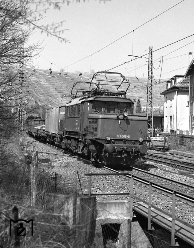 Bild oben: Die 193 008-0 wartet im Jahr 1979 in Bahnhof Geislinger Steige auf neue Aufgaben. copyright: Wolfgang Bügel/Slg. Eisenbahnstiftung