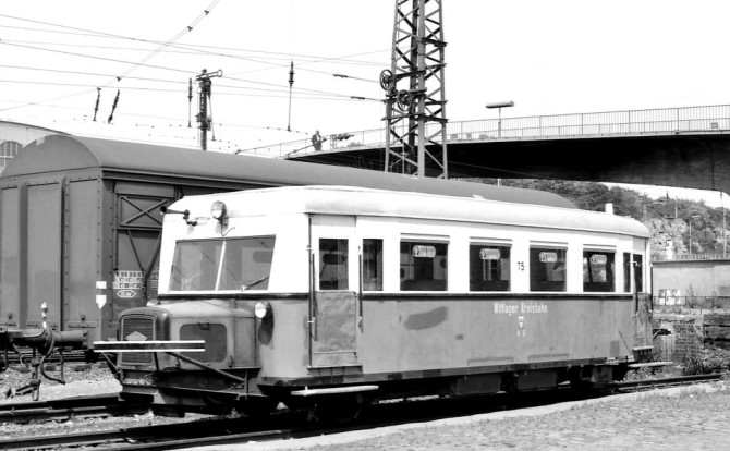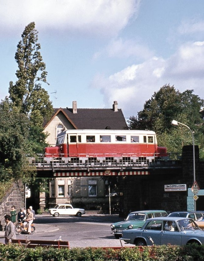 Bild unten: Ein Triebwagen der Wittlager Kreisbahn 1970 in Wuppertal-Oberbarmen copyright: Bernd Backhaus /Slg.Eisenbahnstiftung