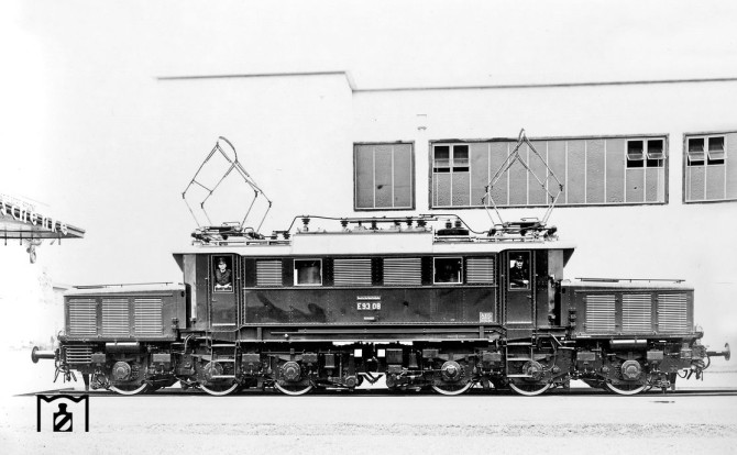 Bild unten: Die E93 008 wurde 1937 noch vor ihrer Ablieferung an die Deutsche Reichsbahn auf einer Ausstellung in Düsseldorf gezeigt. copyright: RVM-Filmstelle Berlin (Bellingrodt)/Slg.Eisenbahnstiftung