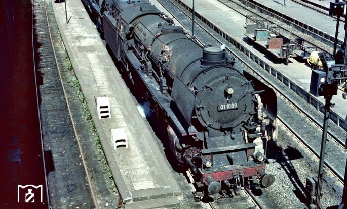 Hier die markante Front der 01 1089 mit Altbaukessel, aber ohne Stromlinienverkleidung.
