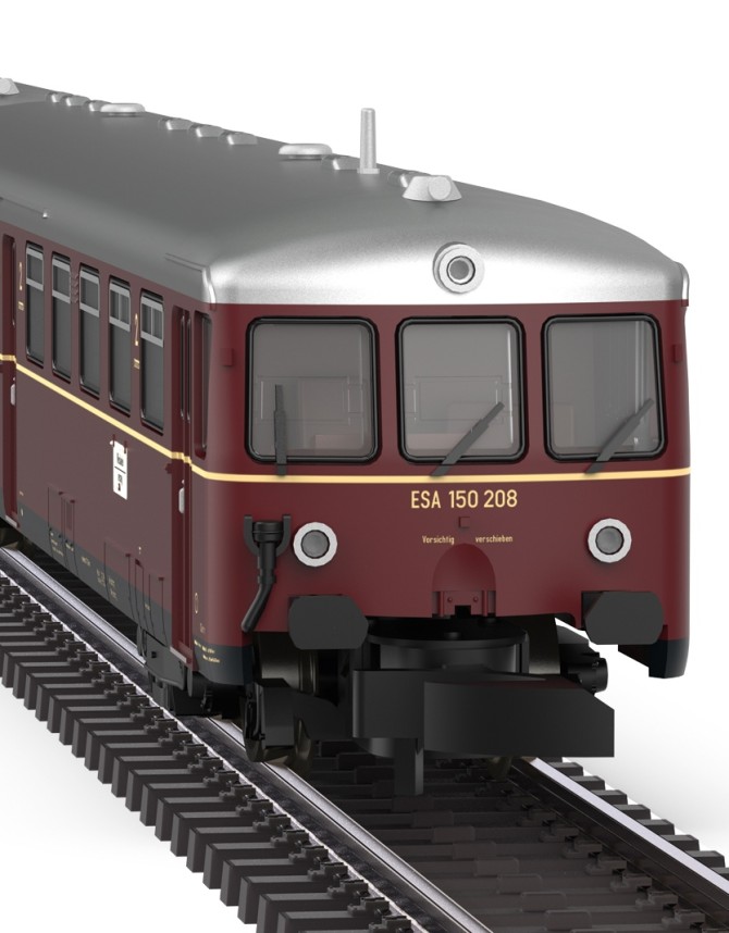 Das Vorbild für das Modell ist der Akkutriebwagen ETA 150 und ESA 150 der Deutschen Bundesbahn (DB) in purpurroter Farbgebung der Epoche III. Zustand um 1965.