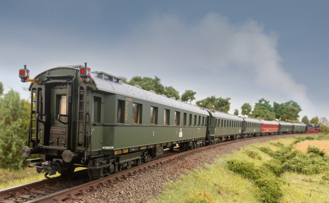 Das Vorbild für dieses Wagen-Set der Einheitsbauart 1928 bis 1930 bestand aus sechs verschiedenen Schnellzugwagen (Verwendungsgruppe 29), in der Ausführung der Deutschen Bundesbahn (DB). Es gab einen Gepäckwagen Pw4ü-29, zwei Schnellzugwagen C4ü-28, in der 3. Klasse, einen Speisewagen WR4ü DSG und einen Schnellzugwagen AB4ü-28, in der 1./2. Klasse sowie einen Schnellzugwagen ABC4ü-29 in der 1./2./3. Klasse. Die Sitz- und Gepäckwagen sind in flaschengrüner Grundfarbgebung. Der Speisewagen in markantem rubinrot. Betriebszustand um 1951.