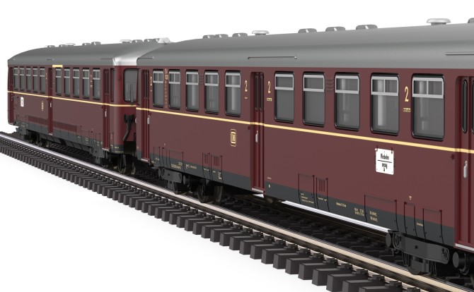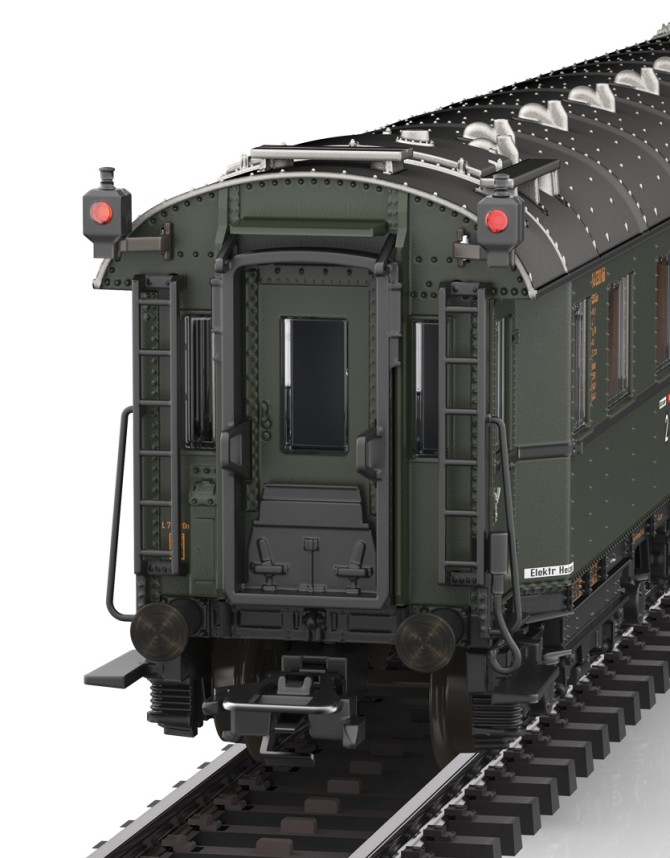 Modelle: Neukonstruktion. Alle Wagen mit Kinematik für Kurzkupplung und mit eingebauter LED-Innenbeleuchtung. Steuerwagen ausgestattet mit 3-Licht-Spitzensignal auf der Führerstandseite mit Lichtwechsel 3x weiß und 2x rot und Führerstandsbeleuchtung. Austauschbare, maßstäbliche Schürzen für die Wagenenden für den Betrieb mit großen Radien, liegen für sämtliche Wagen bei.