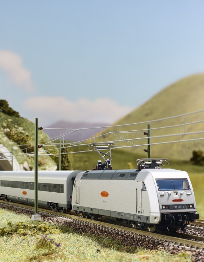 Für die Minitrix-Freunde bei den Clubmitgliedern gibt es in diesem Jahr einen kompletten "Metropolitan" für die Spurweite N. Gezogen wird der Zug von der Schnellzuglokomotive 101 130-3 der Deutschen Bahn AG (DB AG), Geschäftsbereich Metropolitan Express Train GmbH / DB Reise & Touristik (heute DB Fernverkehr).